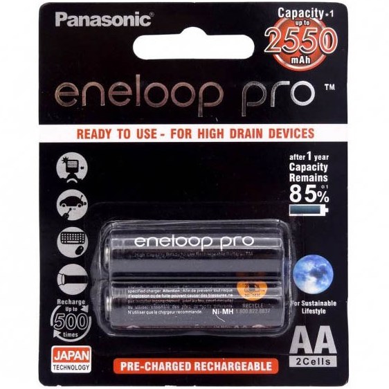 باتری قلمی شارژی پاناسونیک Eneloop Pro ظرفیت ۲۵۵۰ میلی آمپر بسته ۲ عددی